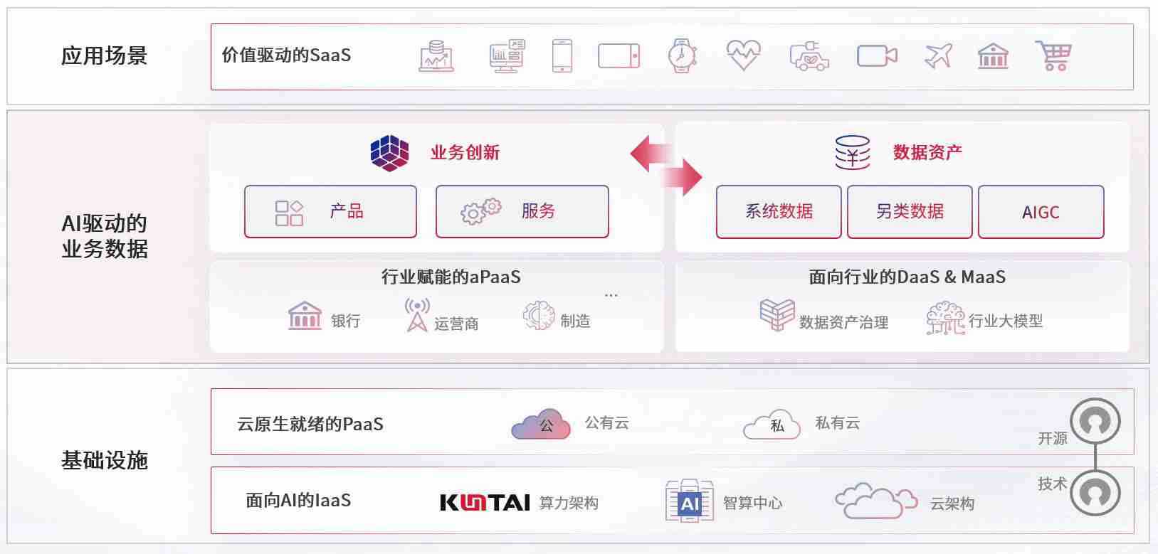 数字时代,,围绕企业数字化转型的关键要素,,,,ABG集团数码开创性的提出数云融合战略和技术体系框架,,,着力在云原生、、、、数字原生、、、、AI原生和信创产业上架构产品和服务能力,,,为处在不同数字化转型阶段的快消零售、、汽车、、、、金融、、医疗、、、政企、、教育、、、、运营商等行业客户提供泛在的敏捷IT能力和融合的数据驱动能力,,,构建跨界融合创新的数字业务场景和新业务模式,,,,助力企业级客户建立面向未来的核心能力和竞争优势,,,,全面推动社会的数字化、、、、智能化转型升级。。。