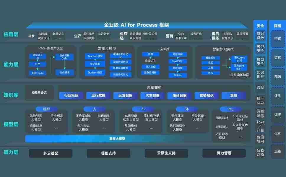 端到端的一站式AI工作空间深度融合了从企业战略规划到日常经营的全流程业务板块,,,定向解决车企内部领域多、、部门多、、、链条长、、、、场景碎片化等难题,,,支持车企快速构建以AI为核心的生产力写作体系,,实现任务执行与AI能力的无缝集成与交互